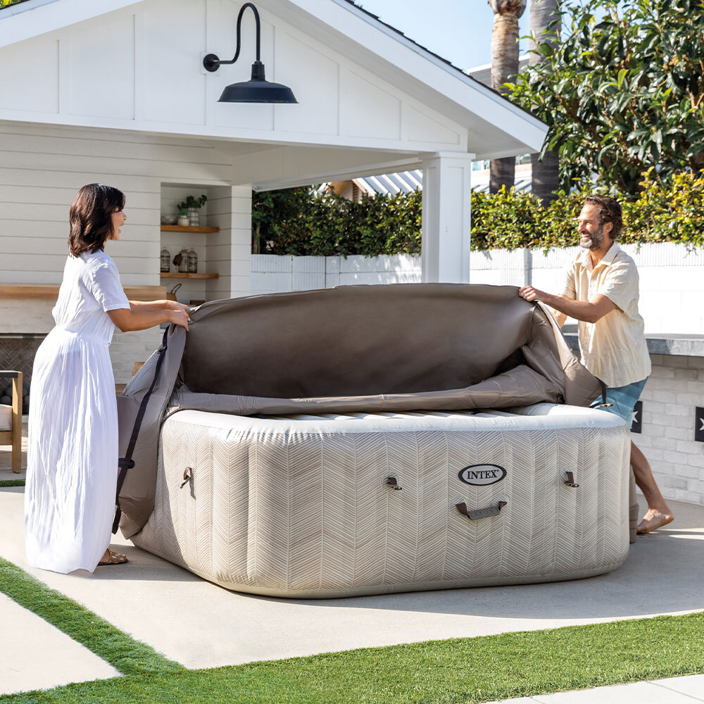 Vous recevez une solution clés en main avec tous les accessoires nécessaires : sac de rangement pratique, couvercle résistant, couverture verrouillable pour la sécurité, tapis de sol thermique pour une meilleure isolation, et cartouches de filtration pour maintenir une eau cristalline.